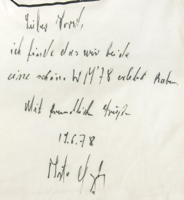 DFB - Trikot 1978 WM | Original match issued Spielertrikot von Deutschland mit der Rückennummer 2. Vorbereitet für Berti Vogts für ein Spiel bei Fußball-Weltmeisterschaft 1978 in Argentinien. Deutschland spielte alle Spiele in langarm. Mit original Widmung vom Weltmeister 1974 und Europameister 1972 Berti Vogts "Lieber Horst, ich finde das wir beide eine schöne WM 78 erlebt haben. Mit freundlichen Grüßen 19.6.78 Berti Vogts". Status:ABA.