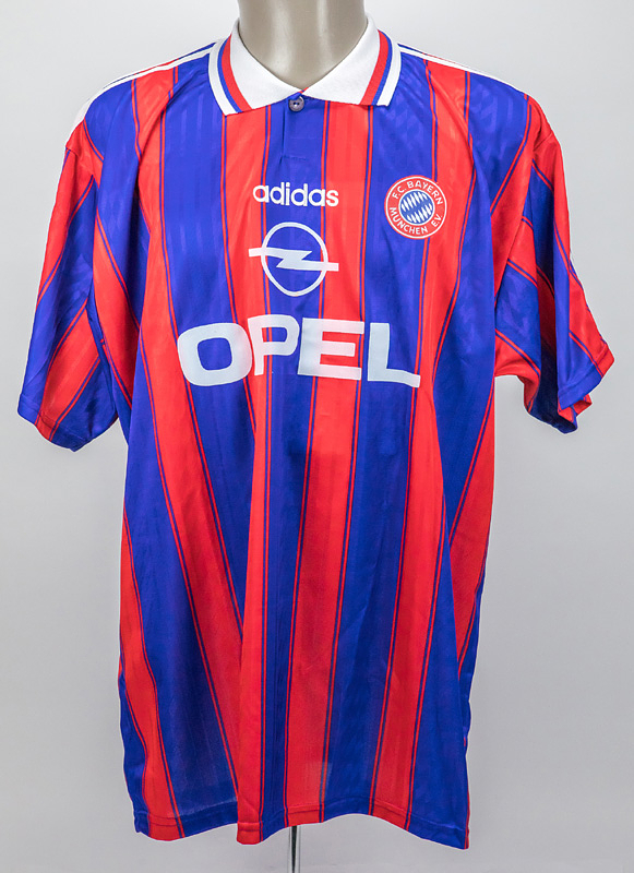 Trikot kurzarm mit Knopfleiste; Größe XL; Vereins-Logo geflockt; adidas-Logo gestickt; Werbeaufdruck `Opel' geflockt; Spielername, Rückennummer und Schriftzug 'Bayern München geflockt; Trikot hat geringe Gebrauchsspuren; mit BL Patch; adidas. Trikot kommt aus der Sammlung eines ehamaligen Betreuers von Bayern München. Zustand: A-