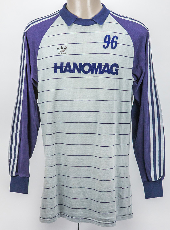 Torwart-Trikot langarm; Größe ca. L; Vereins-Logo und Werbeaufdruck 'Hanomag' geflockt; adidas-Logo aufgedruckt; Rückennummer und Schriftzug 'Hannover' geflockt; Trikot hat Gebrauchsspuren (Etikett wurde entfernt, kleine Löcher); adidas. Zustand: A-