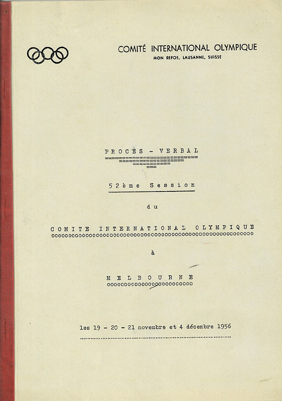 Protokoll IOC-Session 1956 | Proces - Verbal. 52éme Session du Comite International Olympique a Melbourne 1956.