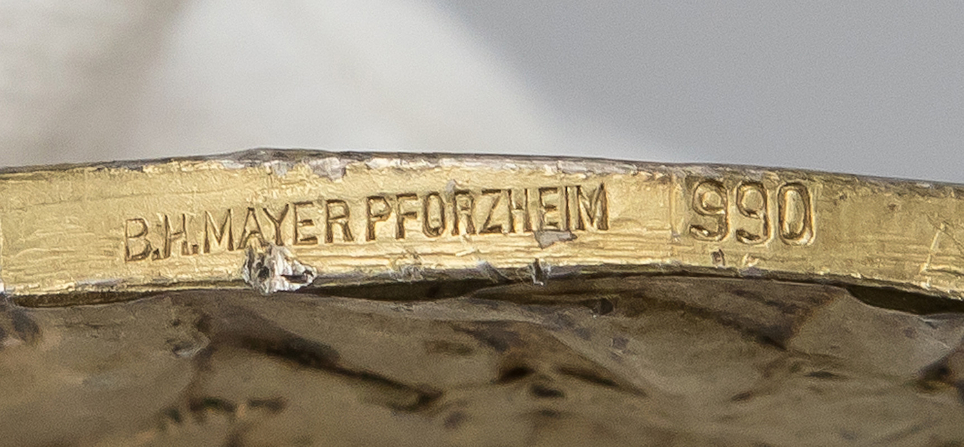 Siegermedaille 1936 | Siegermedaille in Gold „XI.Olympiade Berlin 1936“ von Ernst Ihbe (1913 - 1992; GER) für den 1. Platz in 2000 m Tandem Sprint mit Carl Lorenz. Mit Punze des Herstellers „B.H.Mayer, Pforzheim 990“. Silber (gepunzt, 990er, Gewicht: 74 Gramm), vergoldet, 5,5 cm im original Lederetui mit geprägtem Deckel.