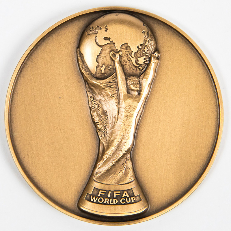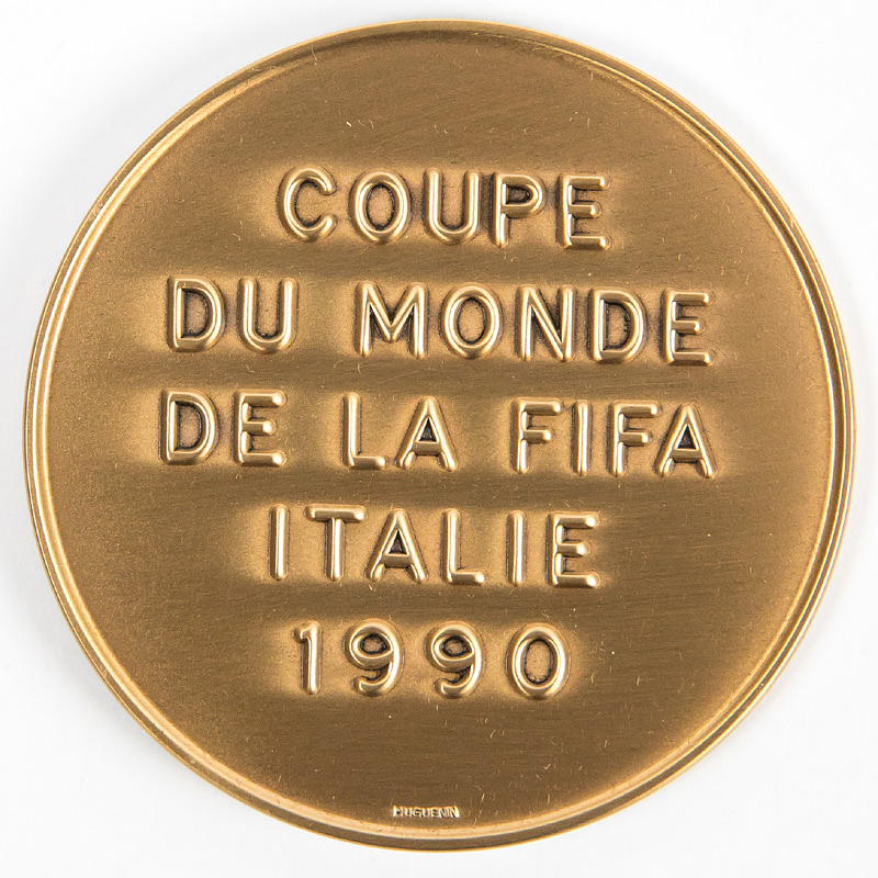 Diese Teilnehmermedaille wurde an alle Spieler vergeben, die sich an der Endrunde der FIFA Fußball - Weltmeisterschaft 1990 in Italien teilgenommen hatten. Sehr selten. Vorzüglich!!!. Zustand: A
