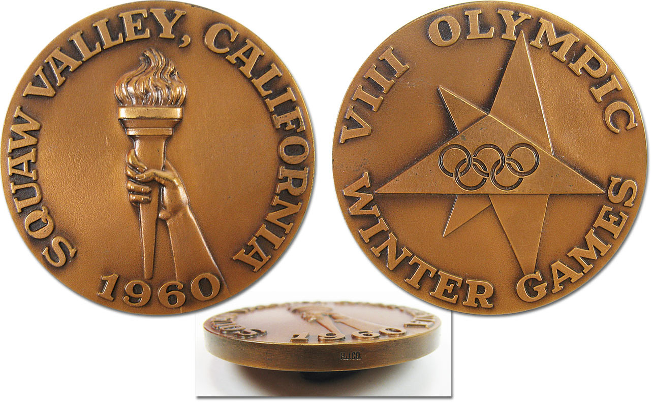 Teilnehmermedaille 1960 | VIII. Olympic Winter Games Squaw Valley 1960. Mit Randpunze. Bronze, 5 cm.