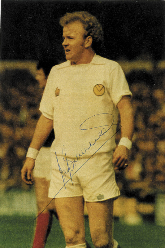 (1942-1997) Farbreprofoto mit original Signatur der schottischen Fußballlegende Billy Bremner, 15x10 cm.