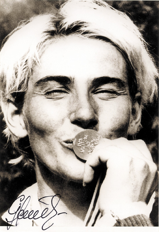 Bronzemedaille im Doppelzweier - Rudern der Frauen für die UdSSR bei den Oympischen Spielen 1976. Mit original Signatur von Genovaite Ramoškiene. S/W-Reprofoto, 15x10 cm.