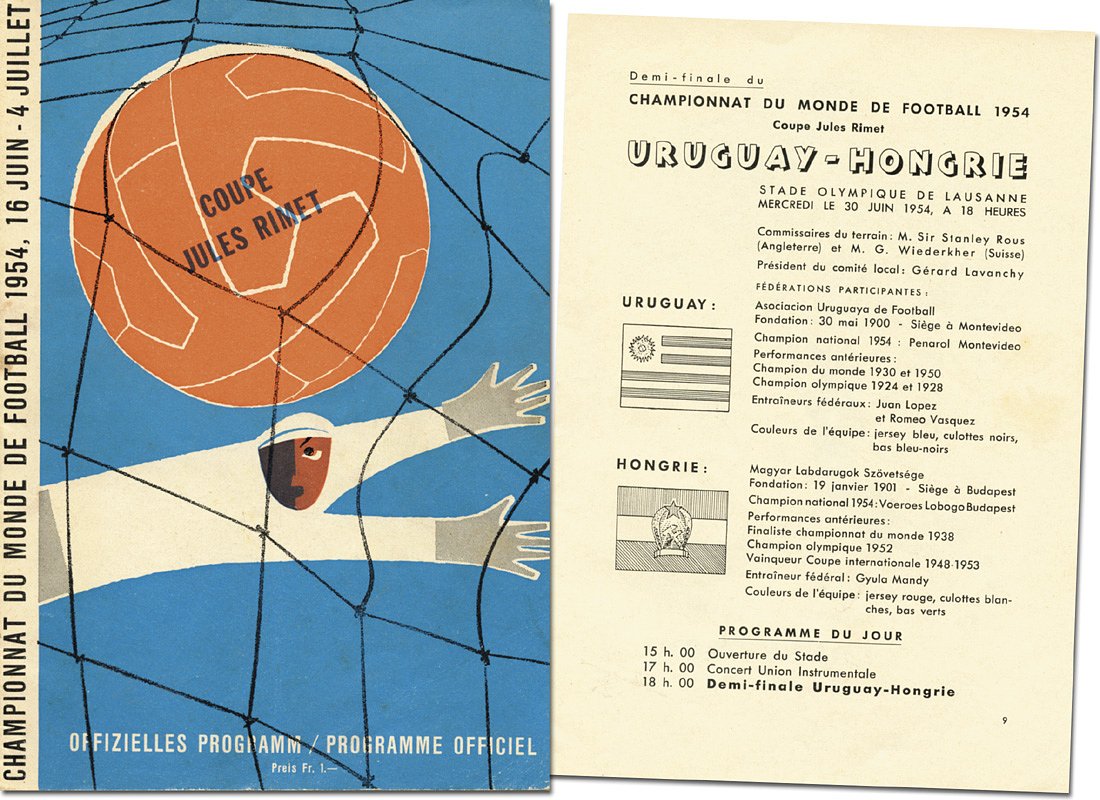 Fußball-Weltmeisterschaft 1954, 30.Juni 1954. Halbfinale: Ungarn - Uruguay in Lausanne.