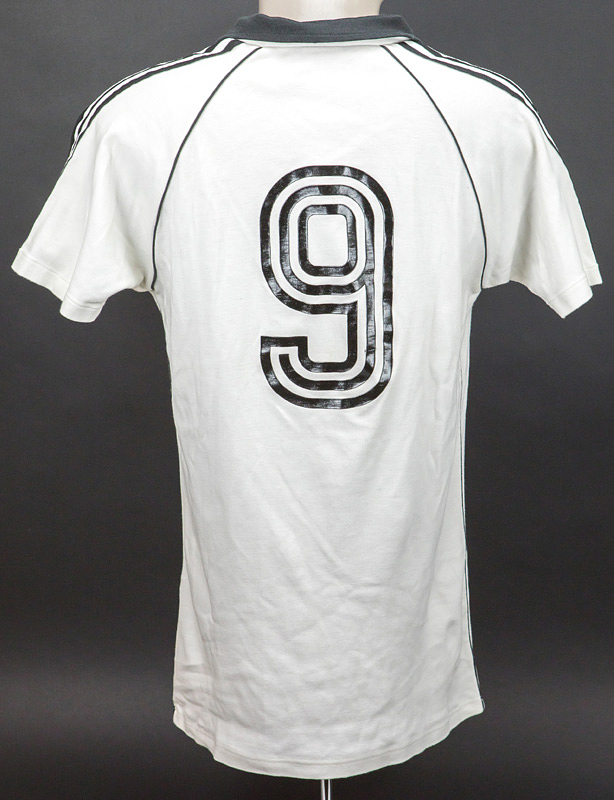 Original match worn / issued Spielertrikot von Deutschland mit der Rückennummer 9. Getragen (vorbereitet) von Horst Hrubesch am 1.1.1981 oder 7.1.1981 bei der Mini-WM Copa de Oro gegen Argentinien oder Brasilien. Hrubesch ist Fußball-Europameister 1980. Status:AAC.