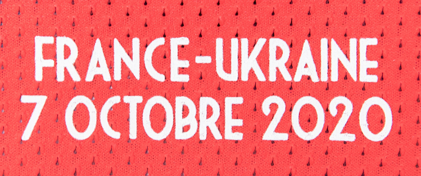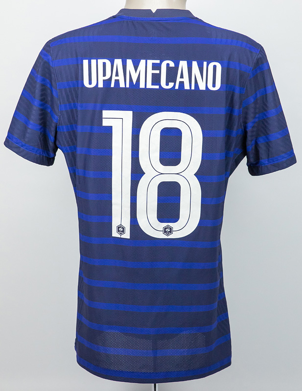 Original match worn / issued Spielertrikot von Frankreich mit der Rückennummer 6. Getragen von Dayot Upamecano am 07.10.2020 im Freundschaftsspiel gegen die Ukraine. Frankreich - Ukraine 7:1. Upamecano ist Vize-Weltmeister 2022 mit Frankreich. Status: AAB.