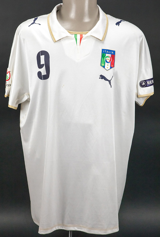 Original match worn / issued Spielertrikot von Italien mit der Rückennummer 9. Getragen von Luca Toni in einem Spiel der Fußball Europameisterschaft 2008 in Österreich und der Schweiz. Toni ist Fußball Weltmeister 2006. Trikot mit original Signatur von Toni auf der Rückseite. Status:ABB.