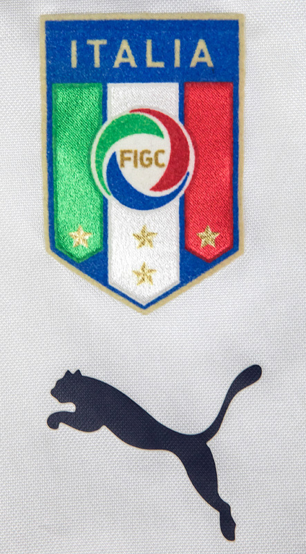 Trikot kurzarm; Größe XXL; Verbands-Logo geflockt; Puma-Logos gummiert; Spielername und Rückennummer (vorn und hinten) gummiert; Trikot mit UEFA Euro 2008-Logo Patch und UEFA Respect Patch; Netzstoff im Beckenbereich; Trikot hat Gebrauchsspuren (kleine Flecken); Schriftzug 'italia' auf Kragenrückseite gummiert; Puma. Trikot kommt aus der Sammlung eines Betreuers von Bayern München, der dieses Trikot direkt von Luca Toni erhalten. Zustand: A-