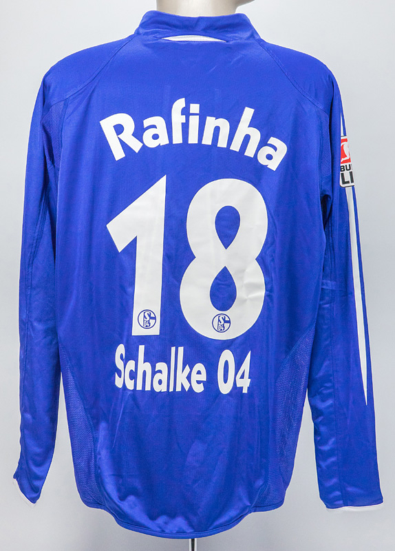 Original match worn / issued Spielertrikot von Schalke 04 mit der Rückennummer 18. Getragen von Rafinha im Spiel der Fußball Bundesliga am 10.12.2005 gegen den FSV Nainz 05. Schalke - Mainz 1:0. Rafinha ist 4-facher Nationalspieler von Brasilien. Status:AAB.