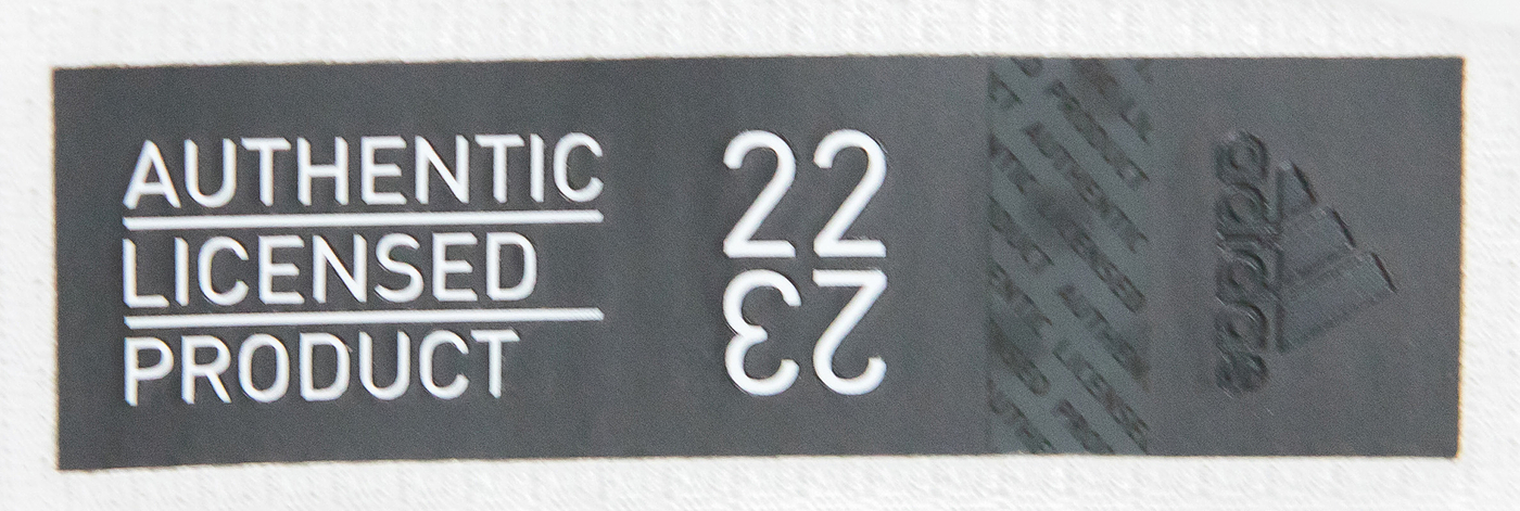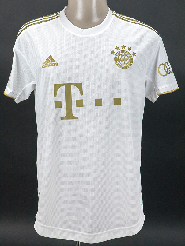 Trikot kurzarm; Größe 5; Vereins-Logo, 5 Meistersterne und adidas-Logo gummiert; Werbeaufdruck `-T---`; Spielername und Rückennummer gummiert; mit CL 6 Starball Patch, UEFA Foundation for children Patch und Audi-Logo Patch; adidas Heat.RDY. Zustand: A-
