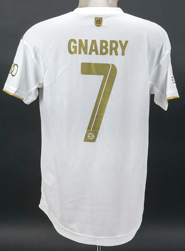 Original match worn Spielertrikot vom FC Bayern München mit der Rückennummer 7. Getragen von Serge Gnabry am 26.10.2022 im Gruppenspiel der UEFA Champions League gegen den FC Barcelona. Barcelona - Bayern 0:3. Gnabry ist 49-facher Nationalspieler von Deutschland. Status:AAB.