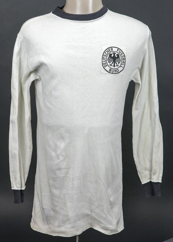 Original match worn Spielertrikot von Deutschland mit der Rückennummer 11, getragen von Werner Weist in dem U-23 Länderspiel Deutschland v Polen am 16.11.1971 in Bremen. Weist schoß in diesem Spiel ein Tor. Status:AAA --Am 17.11. spielte die DFB A-Nationalmannschaft ebenfalls gegen Polen, in absolut identischen Trikots! Dieses Trikot wurde auch bei der Fußball - Weltmeisterschaft 1970 in Mexiko vom DFB vorbereitet, doch die langarm Variante kam aufgrund der hohen Temperaturen nicht zum Einsatz!.