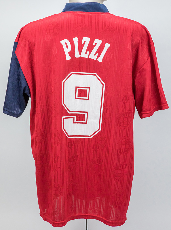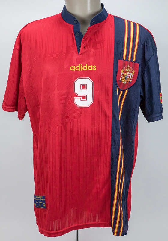 Original match worn Spielertrikot von Spanien mit der Rückennummer 9. Getragen von Juan Antonio Pizzi in einem Spiel für die spanische Fußball Nationalmannschaft 1994. Status:ABC.
