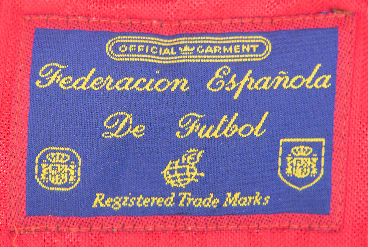 Trikot kurzarm mit Knopfleiste; Größe XL; Verbands-Logo und adidas-Logo aufgestickt; Spielername und Rückennummer (vorn und hinten) gummiert; Trikot hat geringe Gebrauchsspuren; mit Spanien-Flaggen Patch; adidas. Zustand: A-