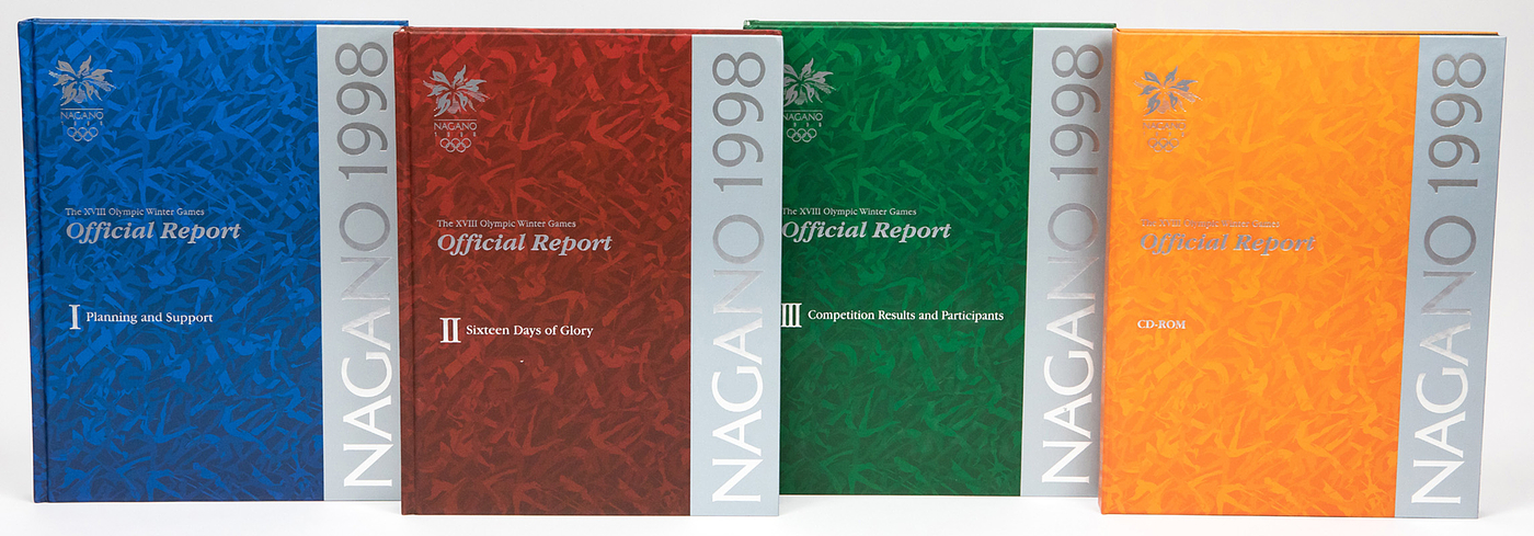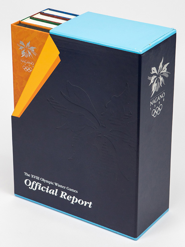 The official report of the XVIII Olympic Winter Games Nagano 1998. 4 Bände (3 Bücher + 1 CD-Kassette) im Originalschuber.