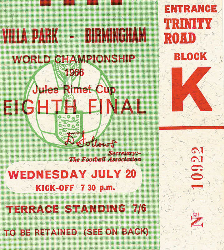 Original Eintrittskarte von der Fußball - Weltmeisterschaft 1966. Zustand: A-