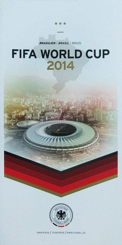 Offizielles DFB-Teambuch für die Fußball-Weltmeisterschaft 2014. Mit Kurzbiografien und Fotos aller bundesdeutschen Teilnehmer. Alle Spieler und Leiter mit faksimilierter Unterschrift. Dieses Teilnehmerheft war nicht für den offiziellen Verkauf bestimmt und wurde nur an Offizielle und FIFA-Gäste verteilt! Sehr selten. (DEUTSCH/ENGLISCH). 96 Seiten, 19x11cm, Karton, über 60 Farbfotos, Deutscher Fußballbund, Frankfurt 2014. Zustand: A-