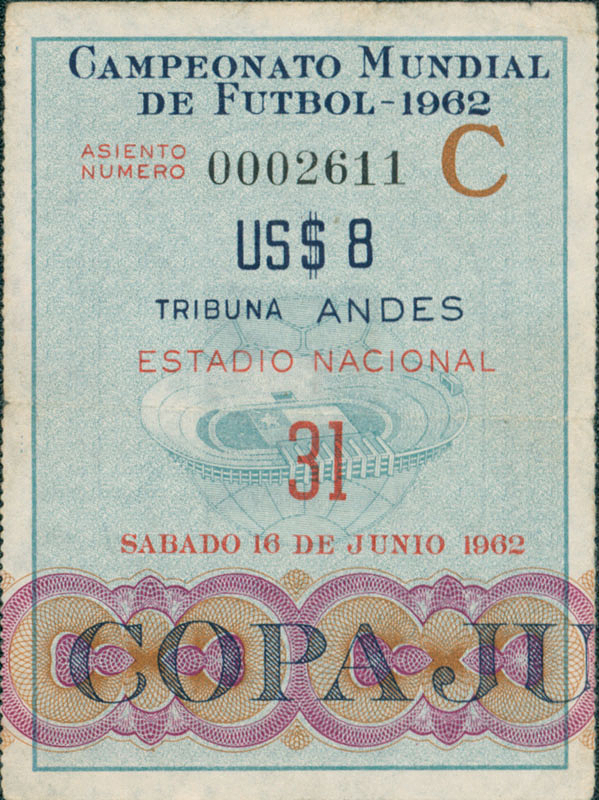 Campeonato Mundial de Futbol 1962. Estadio Nacional. 16.6.1962. Spiel um Platz 3 (Chile - Jugoslawien 1:0). 8,5x6,5cm.