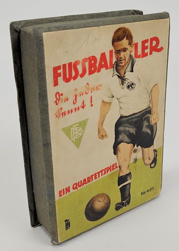 Jede der 48 Spielkarten (komplett) zeigt einen deutschen Nationalspieler mit Foto und Kurzbiografie. Das Kartenspiel wurde ca. 1934 produziert. Guter Zustand. Absolute Rarität!. Zustand: A-B
