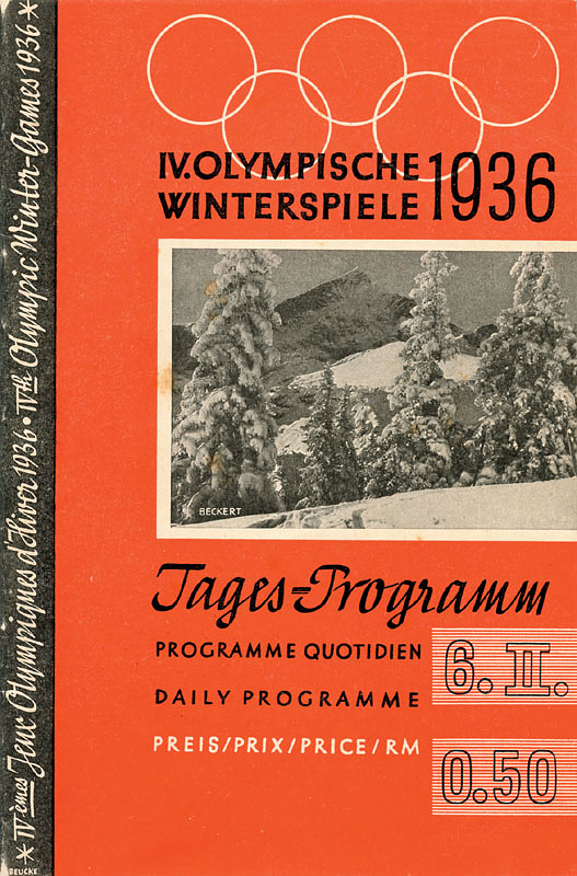 IV. Olympische Winterspiele 1936. Tagesprogramm 6.2.1936. Eröffnungsfeier und 1.Tag.