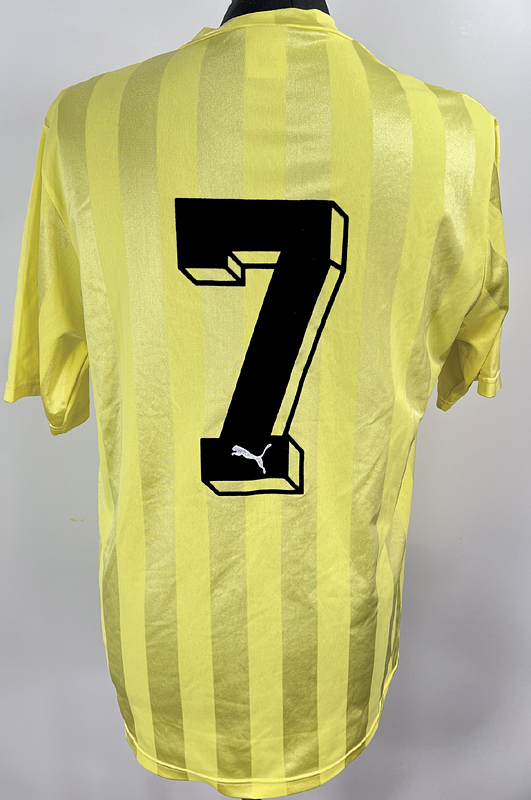 Original match issued Borussia Mönchengladbach Spielertrikot mit der Nummer 7. Vorbereitet für ein Spiel in der Saison 1987/1988. Status:ABB.