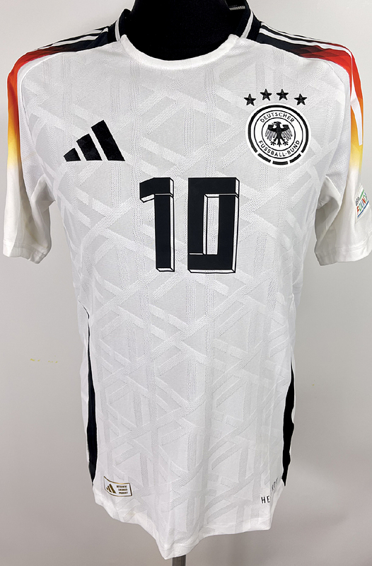 Original match issued DFB Spielertrikot mit der Nummer 10 von Jamal Musiala. Vorbereitet für eine Nationsleague-Spiel im Jahr 2024. Trikot stammt aus dem Umfeld eines DFB-Mitarbeiters. StatusAB.