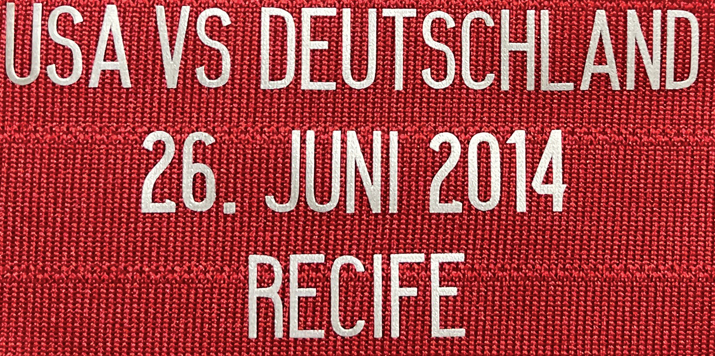 Original match issued DFB Spielertrikot mit der Nummer 19 von Mario Götze.Vorbereitet für das Gruppenspiel gegen die USA am 26.06.2014 in Recife, Brasilien, was die deutsche Nationalmannschaft 0:1 gewann, durch ein Tor von Thomas Müller.Status AAB.