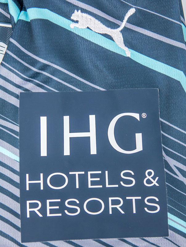 Auswärts-Trikot (away) kurzarm; Größe M; Vereins-Logo gummiert; Puma-Logos gesticktt; Werbeaufdruck RB-Logo gummiert; Rückennummer, Spielername und Schriftzug 'RB Leipzig' gummiert; Schriftzug 'You can Do Anything' auf Kragenrückseite gummiert; mit DFB Trophy Patch und IHG Hotels & Resorts Patch; Puma DryCell. Trikot Kommt von einem Mitarbeiter von RB Leipzig. Zustand: A