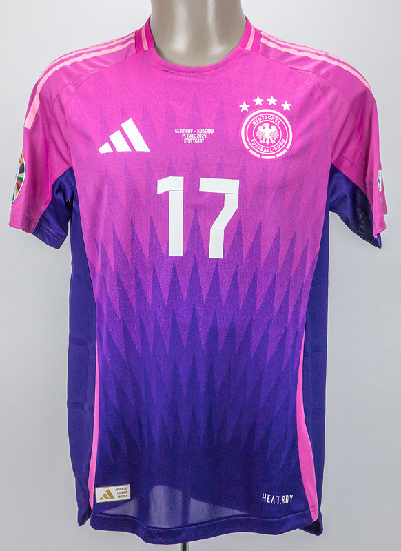 DFB - Trikot 2024 EM | Original match issued Spielertrikot von Deutschland mit der Rückennummer 17. Vorbereitet für Florian Wirtz am 19.06.2024 im Gruppenspiel der Fußball Europameisterschaft gegen Ungarn. Deutschland - Ungarn 2:0. Status:AAC