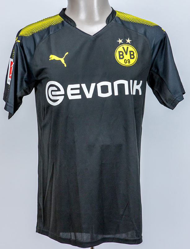 Original match worn / issued Spielertrikot mit Hose von Borussia Dortmund mit der Rückennummer 22. Getragen von Christian Pilisic 03.03.2018 im Spiel der Fußball Bundesliga gegen RB Leipzig. RB - BVB 1:1. Pulisic ist 78-facher Nationalspieler von den USA. Seltene Auswärtsvariante. Status:AAC.