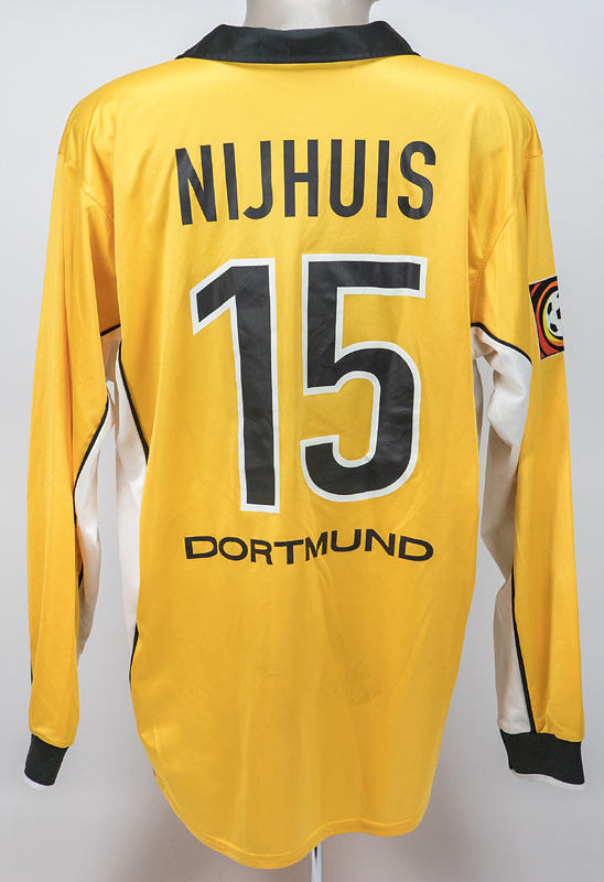 Original match worn Spielertrikot von Borussia Dortmund mit der Rückennummer 15. Getragen von Alfred Nijhuis im Spiel der Fußball-Bundesliga gegen den FC Bayern München am 4.12.1999. Bayern - BVB 1:1. Tauschtrikot. Status: AAA.