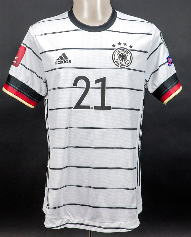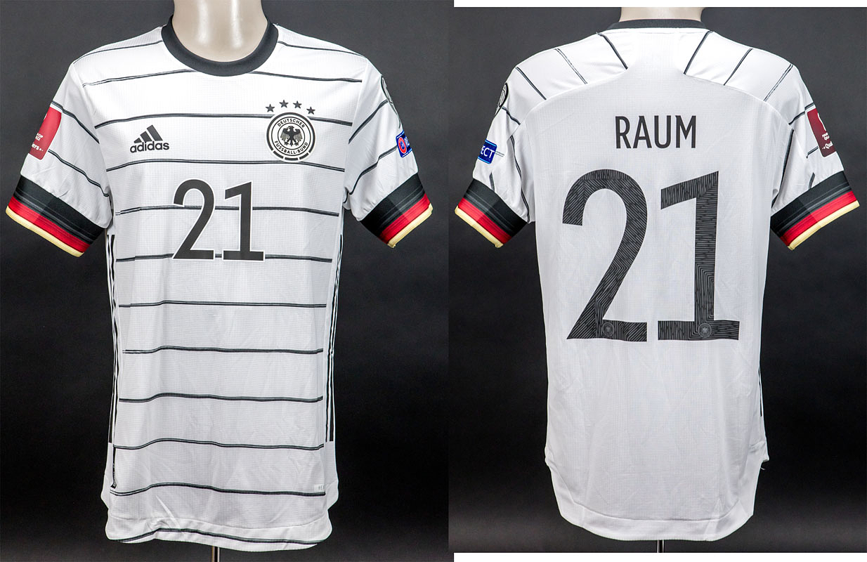 Original match worn Spielertrikot von Deutschland mit der Rückennummer 21. Getragen von David Raum in einem Qualifikationsspiel zur Fußball Weltmeisterschaft 2022 in Qatar. Status:ABB.