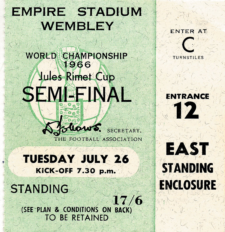 Original Ticket Fußball-Weltmeisterschaft 1966. -- kleine Notizen auf der Rückseite. Zustand: A