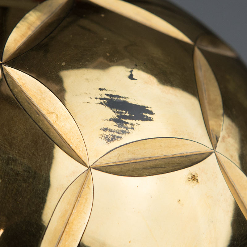 Trophae Spieler des Jahres 1998 in Tschechien für den Nationalspieler Pavel Nedved. Vergoldeter Metallfußball montiert auf einem Marmorsockel mit der vergoldeten, gravierten Inschrift "1998 Zlaty Mic Pavel Nedced Ceska Republika" und "Klub Sportovnich Novinaru" (Verband der Sportjournalisten), Gewicht: 2,6 Kg. Höhe: 21 cm. Original Trophae - UNIKAT.