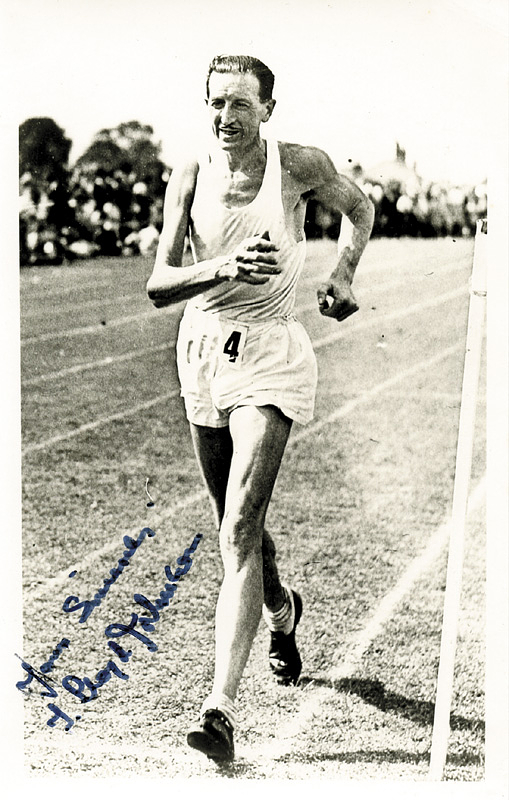 Johnson, Tebbs Lloyd | (1900-1984) S/W-Foto mit original Signatur von Tebbs Lloyd Johnson (GBR). Bronzemedaillengewinner im 50 km Gehen bei den Olympischen Spielen 1948, 14x9 cm.