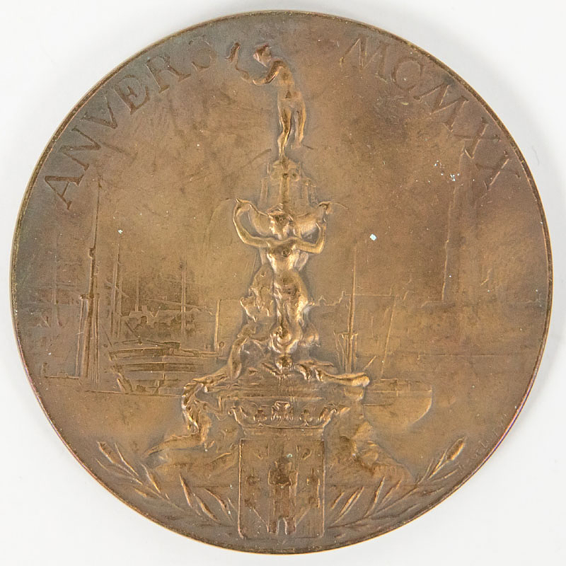 Siegermedaille 1920 | Bronzemedaille von den VII. Olympischen Spielen 1920 in Antwerpen für den 3.Platz. Bronze, 6 cm (Entwurf von Josué Dupon).