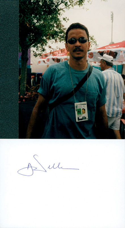 Weller, David | Karteikarte mit original Signatur von David Weller (JAM). Bronzemedaille im Radsport bei den Olympischen Spielen 1980 im 1000 m Zeitfahren, 10,5x7,5 cm