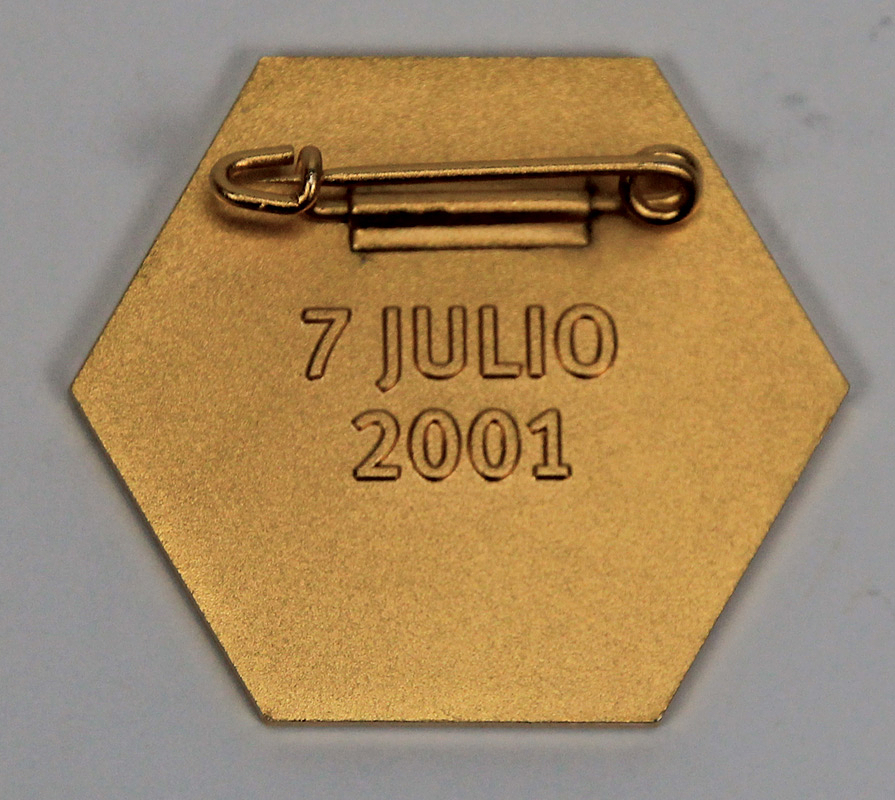 FIFA-Kongress 2001 | Offizielle Teilnehmerabzeichen FIFA-Kongress "Congreso Extraordinario Buenos Aires" auf derRückseite Inschrift " 7 Julio 2001". Bronze, vergoldet, 3,5x3 cm.