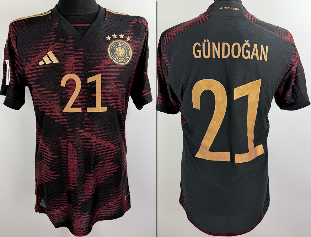 DFB - Trikot 2022 WM | Original match issued DFB Spielertrikot mit der Nummer 21 von Ilkay Gündogan.Vorbereitet für die WM 2022 in Qatar.Die Auswärtsvariante kam nicht zum Einsatz bei der Weltmeistschaft, da Deutschland überraschend in der Vorrunde ausschied. Status:ABB.