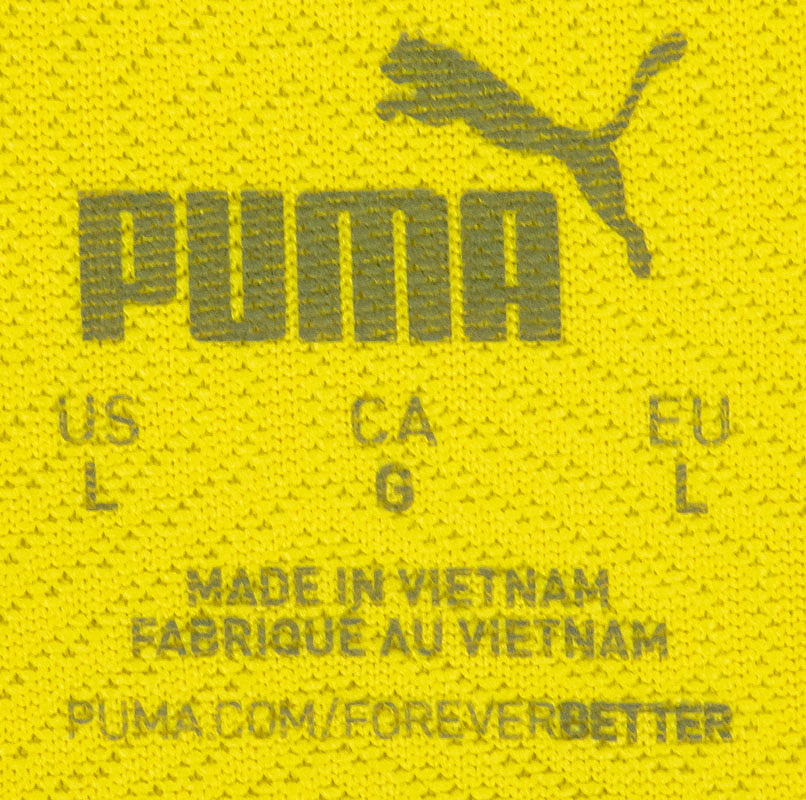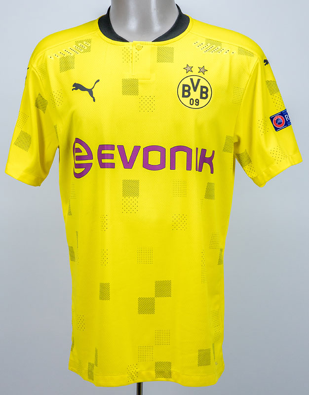 Trikot kurzarm mit Knopfleiste; Größe L; Vereins-Logo, 2 Meister-Sterne und Puma-Logos gummiert; Werbeaufdruck 'evonik' gummiert; Rückennummer, Spielername und Schriftzug 'Dortmund' gummiert; Lüftungslöcher gelasert (Laser Holes); Schriftzug 'BVB' auf Kragenrückseite gestickt; mit Champions League Starball Patch und UEFA Respect Patch; Puma DryCell. Zustand: A