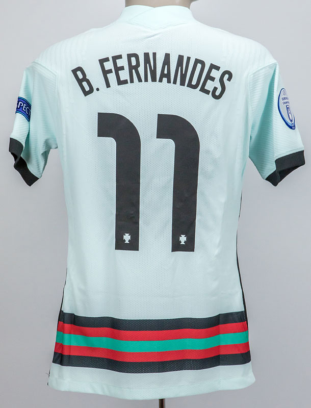 Portugal - Trikot 2020 EM | Original match worn / issued Spielertrikot von Portugal mit der Rückennummer 11. Getragen von Bruno Fernandes am 15.06.2021 im Gruppenspiel der Fußball Europameisterschaft gegen Ungarn. Ungarn - Portugal 0:3. Fernandes ist UEFA Nations League Sieger 2019 und 2025. Status:AAC.