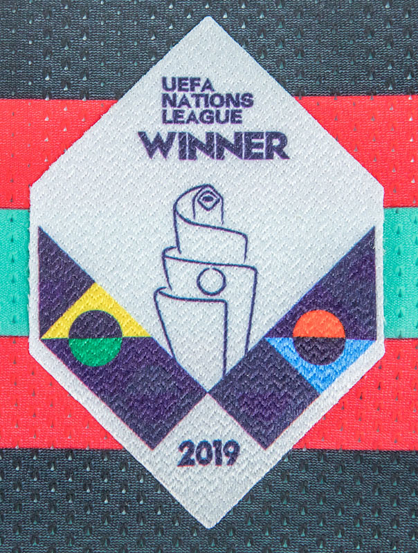 Trikot kurzarm; Größe M; Verbands-Logo, UEFA Nations League Winner 2019 badge und Nike-Logo gefockt; Match-Details, Spielername und Rückennummer (vorn und hinten) gummiert; Trikot mit UEFA Europaen Champions 2016 Patch und UEFA Respect Patch; Nike Varporknit. Zustand: A