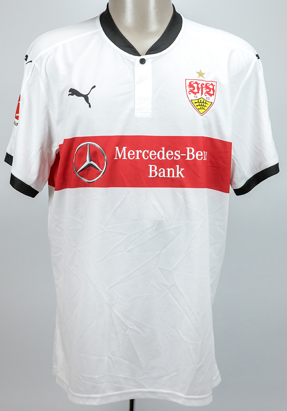 Trikot kurzarm; Kopfleiste; Größe XL; Vereins-Logo, 1 Meisterstern und Puma-Logos gummiert; Werbeaufdruck 'Mercedes-Benz Bank' gummiert; Spielername, Rückennummer und Schriftzug 'Stuttgart' gummiert; Puma DryCell. Der Einlieferer hat dieses Trikot von Özcan bekommen. Zustand: A-