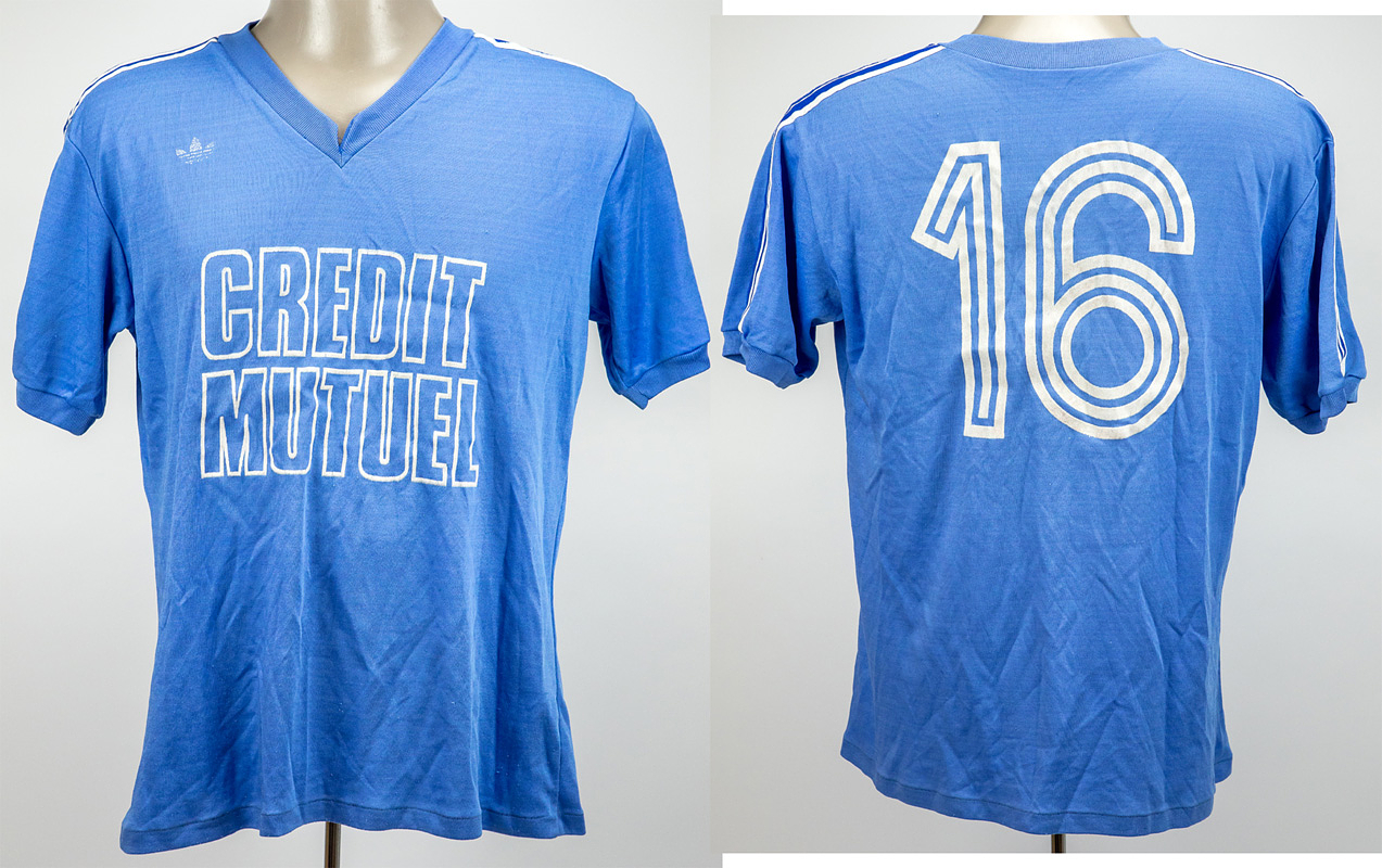 Straßburg - Trikot 1979 | Original match worn Spielertrikot von Racing Straßburg (Frankreich) mit der Rückennummer 1. Getragen in einem Spiel der Ligue 1(französische 1. Liga) in der Saison 1979/1980. Trikot aus der Sammlung von des französischen Nationalspielers Gildert Gress. Status:ABA..