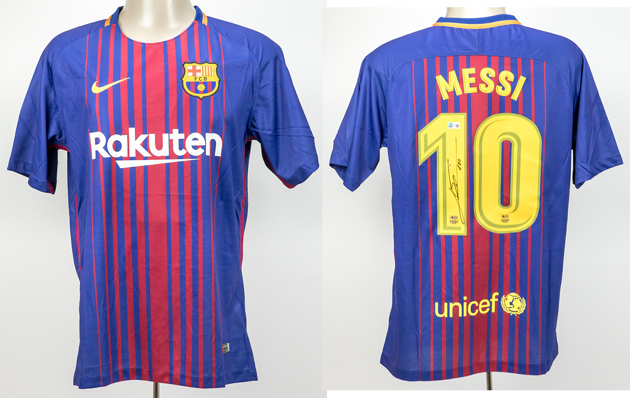 Barcelona, FC - Messi | Original Nike Fanshirt FC Barceolna mit der Rückenummer "10 Messi". Mit original Signatur von Lionel Messi auf der Rückennummer. Größe L. Mit Echtheitsholhogramm von "Witnes Autographs"