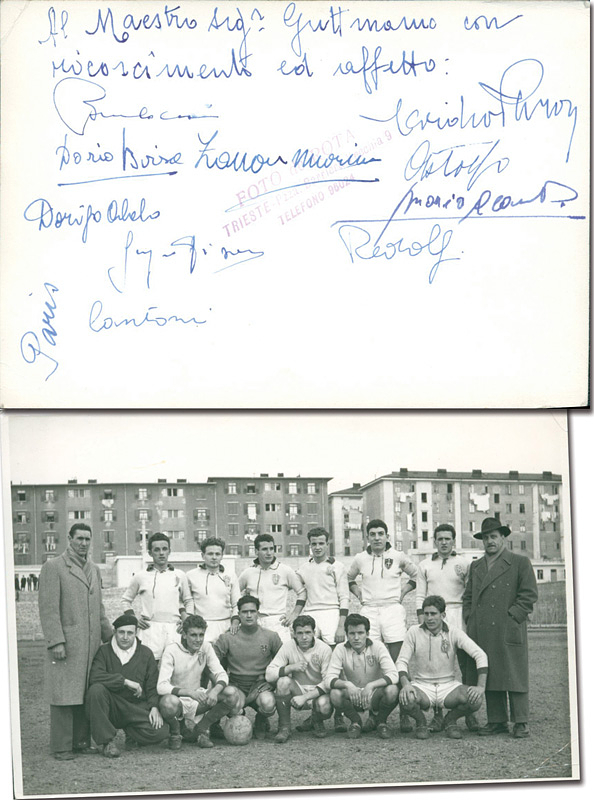Mit einer völligen unbekannten und als Abstiegskandidat Nr. 1 geltenden Triester Mannschaft schaffte Guttmann das „Wunder von Triest“ und belegte in der Serie A im Jahre 1950/1951 einen sensationellen Mittelplatz. Zustand: A