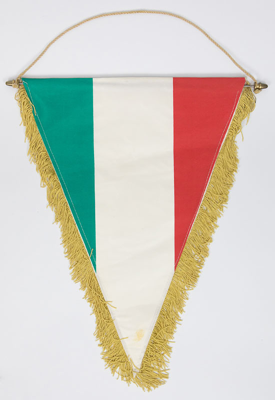 Turin,Juve - Spielwimpel 1984 | Originalspielwimpel Juventus Turin mit aufgesticktem Schriftzug „Coppa Campioni 1984/85 Grasshoppers Club Zürich v Juventus F.C. (Turin) Zürich 7 / 11/ 1984“ (2:4) mit aufgesetztem bestickten Vereinslogo. Rückseite in Nationalfarben Italiens. Leinenwimpel mit Seidenfransen. Metallstange. 42x32 cm.
