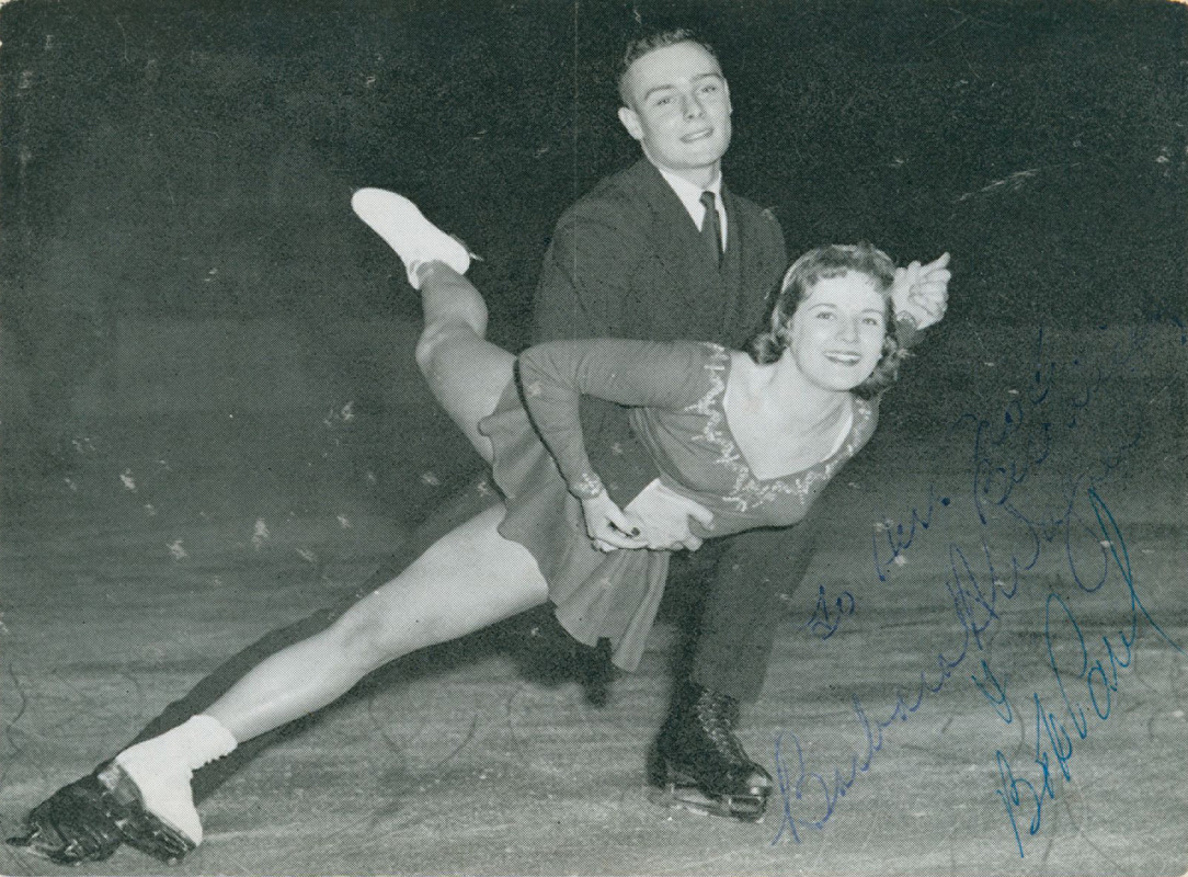 Wagner/ Paul | S/W-Postkarte mit den Originalsignaturen der beiden Olympiasieger im Paarlaufen 1960 aus Kanada Barbara Wagner (*1938) und Robert "Bob" Paul (1937-2024), 14x10,5 cm.